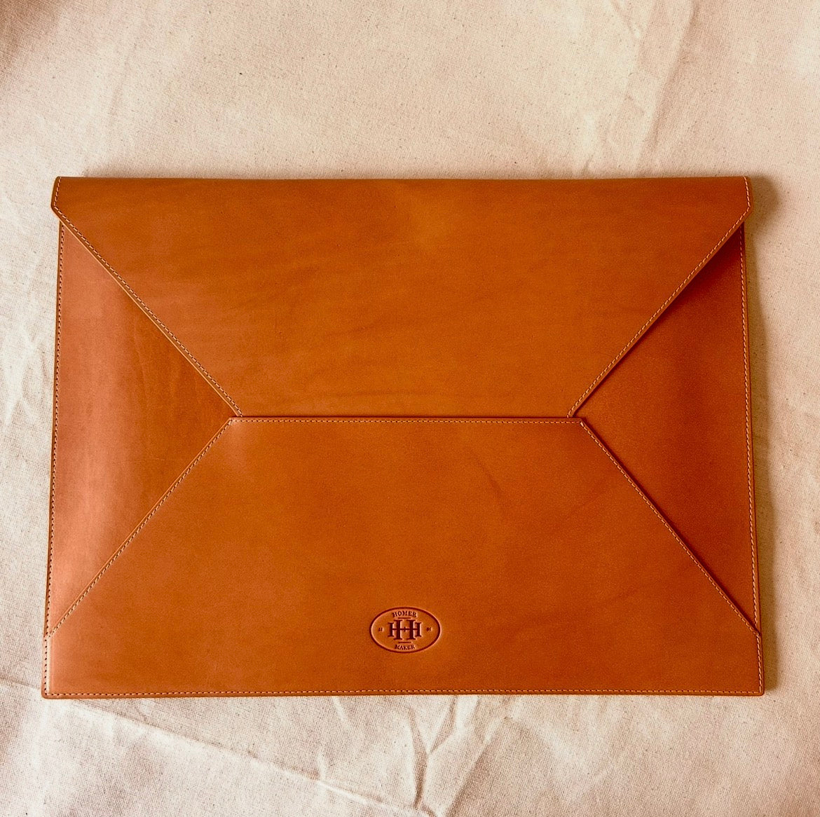 Designed to carry documents, a laptop, or creative essentials, it slips easily under the arm or into a tote. Over time, the leather softens and develops a rich patina, revealing the character of its use and the hand of its maker.