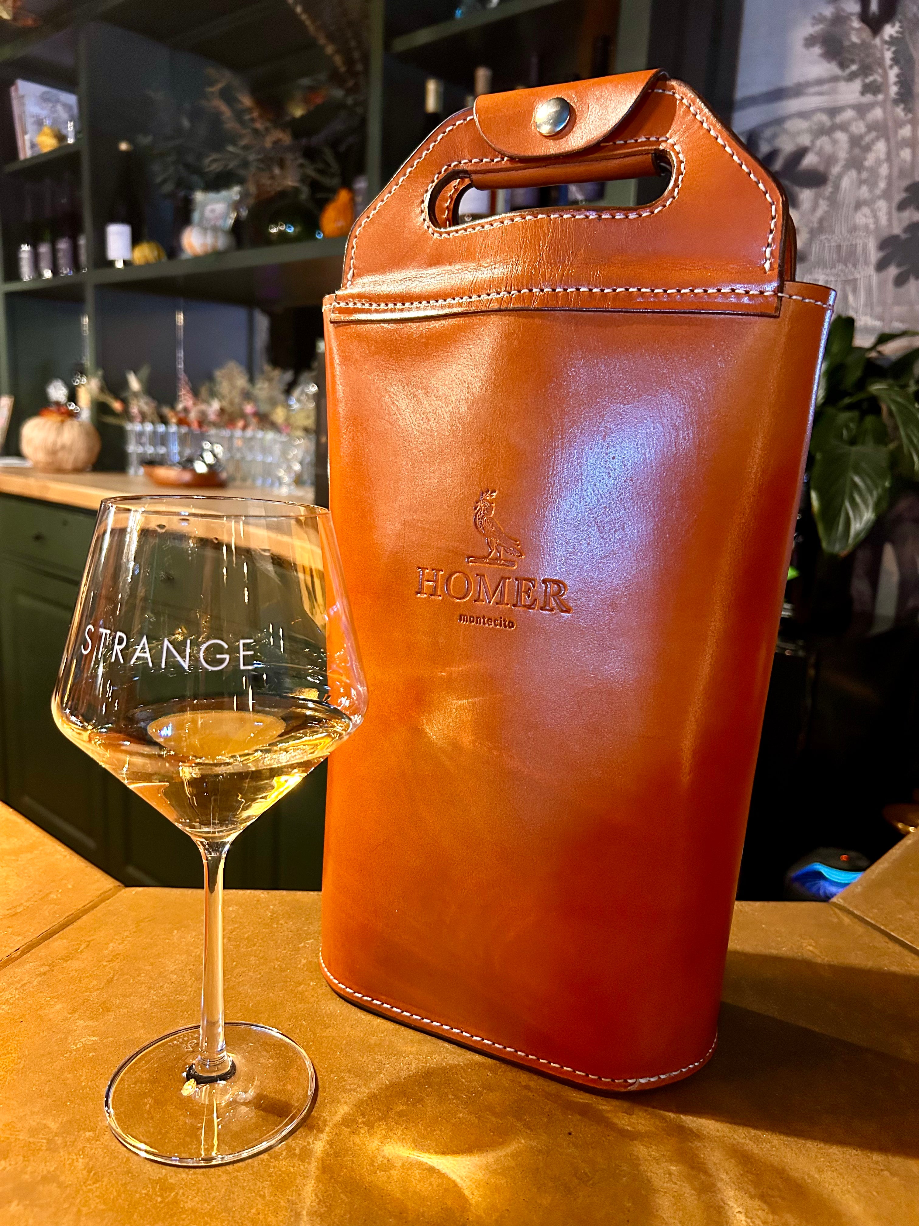 Designed to hold full-size 750 ml bottles, the case features a structured leather form that protects its contents while the soft shearling liner cushions and insulates. The natural wool fibers help maintain temperature — keeping whites cool and reds comfortably cellar-ready — even on the journey from vineyard to evening gathering.